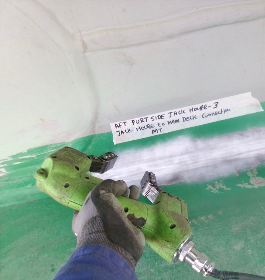 Rope Access NDT work on the helideck structure, forward bulkhead and legs. The SOW was UTG, ECT, MPI and painting.